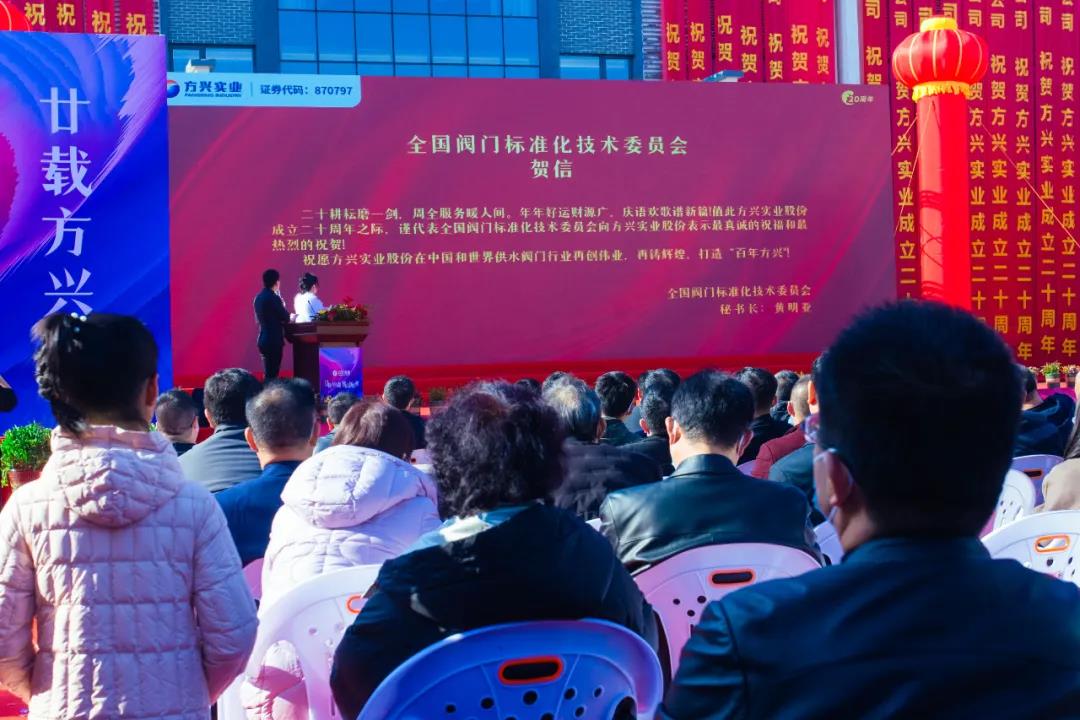 2021年11月28日,安徽方興實業股份有限公司成立二十周年慶典儀式,在海內外各界同仁的祝福與見證下圓滿落下帷幕。青陽縣人民政府、青陽縣人大、青陽縣政協、池州市企業聯合會、青陽縣發改委,青陽縣科技經信局,青陽縣市場監督管理局、青陽縣工商業聯合會、青陽縣木鎮鎮人民政府、青陽建設投資集團有限公司等政府部門領導以及來自全國十八個省市的水務集團、合作商代表、國際合作伙伴共同參與了此次盛典,全國閥門標準化技術委員會、中國通用機械工業協會閥門分會發來賀信表達祝福,波蘭、法國、西班牙等國際合作伙伴通過視頻的形式發來賀電傳遞來自海外的美好祝?!,F場高朋滿座、歡歌鼓舞,方興實業全體員工與所有與會嘉賓共同歡慶方興實業股份有限公司成立二十周年,回顧方興二十年發展的光輝歷程,展望未來方興新時代的光明前景。